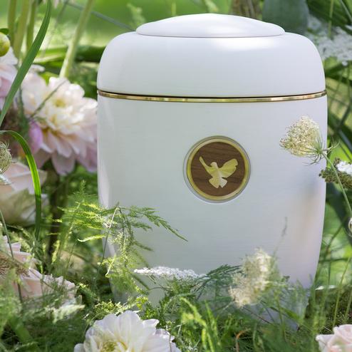 Nachfolgend sehen Sie einige schöne Beispiele unseres Partners "himmelblau". Diese Urnen können über Ringe, Symbole und Medaillons individuell gestaltet werden. Über das Gabenfach im Deckel können dem Verstorbenen persönliche Erinnerungstücke mitgegeben werden.